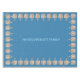 Esta toalha na moda Hanukkah em um rico e profundo azul apresenta uma fronteira de madeira de carvalho rústico e falsa, que vai fazer uma adorável adição a uma mesa de férias formal ou a uma festa infantil. A opção de personalizar esta toalha de mesa Chanukah é o texto no meio em uma simples fonte azul-céu onde você pode adicionar seu nome de família, uma mensagem de Chanucá ou você pode remover o texto do marcador de posição se preferir nenhum texto em suas linhas. Leve suas celebrações do Festival das Luzes para o próximo nível com uma toalha de mesa de padrão de sonho única para o feriado.