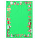 A toalha de mesa média "Feliz e Natal Brilhante" sobre fundo verde, apresenta um design festivo com uma série de decorações de Natal, incluindo elfos, Papais noeis e muito mais, enfeitando a fronteira. O centro da toalha de mesa fica limpo, fazer perfeito para colocar placematas, trivialidades e outros itens de feriado. Esta design garante que sua mesa permanece decorativa e funcional para todas as suas reuniões de Natal. Veja minha coleção para mais dois tamanhos.