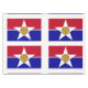 Tablecloth with flag of city of Dallas, Texas; flag with red and blue horizontal bands with seal of the city inside of a white star in the center