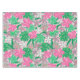 Flores rosa e branco tropicais com lençol de mesa de folhas de palmeira capturam a essência do paraíso tropical com suas flores rosa e branco vibrantes e folhas de palmeira exuberantes. O design exala um sentimento refrescante e exótico, perfeito para adicionar um toque de felicidade tropical a qualquer espaço ou festa.