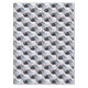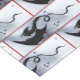 Dragão tribal preto com um pano de fundo de cinza azul com pequenas flores vermelhas e borda vermelha.