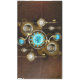 Lentes de turquesa com relógio antigo com engrenagens de latão e chaves de ouro sobre fundo enferrujado e marrom. Estilo Steampunk.