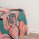 Abstract Geometric Roses In Shades Of Black And Teal On A Coral Background For A Modern Minimalist Floral