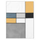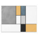 Arte abstrato moderna com retângulos coloridos (azul marinho, cinza, preto, amarelo, branco) no estilo Mondrian sobre fundo branco