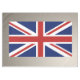 Uma bandeira vermelha e azul colorido do Reino Unido é colocada sobre um fundo bege suave.
