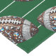Aproveite o futebol, amigos, comidas, diversão e comemore todos os super toques no campo de futebol! Grande jogo ou jogador universitário de futebol assistindo a festa de jogos de futebol, jogando fora, jogando futebol em toalha de mesa verde. Traga um pouco de brilho para o seu janto de futebol ou de futebol segundo grau. A opção sustentável reutilizável pode ser utilizada durante toda a temporada de futebol.