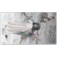 Um postal de Natal francês vintage do dominio público. Ele apresenta uma garota vestida de presentes de carregando anjo de Natal.
