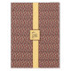 Um padrão de gíria de tendência apresenta camadas brancas brilhantes e vermelhas e brilhantes, ensolhando camadas de impressão leopardo em moda. Uma linha marrom profunda separa as colunas do diafragma para um toque final clássico. Personalize o monograma com o inicial apropriado para um toque personalizado.