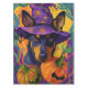 Abraçar o espírito do Dia das Bruxas com esta design encantadora que apresenta um cachorro fofo num chapéu de bruxa rodeado por abóboras entalhadas. Perfeito por adicionar um pouco de charme assustador às suas comemorações festivas.