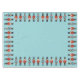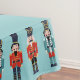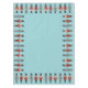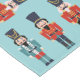 Um conjunto de três malucos diferentes marchando pelas margens desta toalha de mesa.