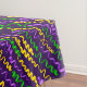 Mardi Gras Tablecloth com fitas verdes, ouros e roxas coloridas.