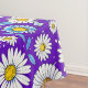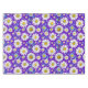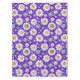 Um padrão contínuo colorido apresentando margaridas com centros amarelos, folhas azuis e um fundo roxo vibrante. Perfeito para temas de primavera, designs de tecidos e artesanatos digitais ou impressos alegres.