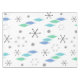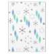 Uma era atômica retro design com um tema de Natal. Apresenta flocos de neve prateada e turquesa e ornamentos de árvores de Natal verdes e hortelã.