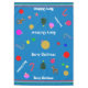Merry Christmas is written in a fun snow capped font in white lettering against blue background. Designed for sizes 52" x 70" and 60" x 84".
