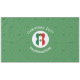 Personalized tablecloth has a horizontal angel wearing the flag of Mexico for holiday gift decorating or Christmas decor. The Mexican Flag Christmas angel is found inside a white, fractal circle of squiggly squares. The background is a green fractal squiggly squares. Add your own text or personalize with a name and the year.
