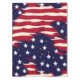 Uma representação dinâmica e vibrante de abstrato da bandeira americana, com faixas vermelhas e brancas que fluem, intercaladas com estrelas brancas sobre fundo azul profundo. A design capta a essência do patriotismo e o espírito de liberdade.
