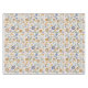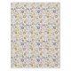 Padrão Boho 01.w. Esta imagem é um padrão uniforme que apresenta um design floral boho vibrante. O padrão é composto por várias flores estilizadas em tons de azul, amarelo e laranja, intercaladas com folhas e pequenos pontos. O fundo é um branco simples, que permite destacar as flores coloridas. A estética geral é alegre e brincalhona. Os detalhes intrincados dos elementos florais criam uma sensação de profundidade e textura, acrescentando interesse visual. O uso de cores contrastantes aumenta a vibração e torna o padrão visualmente atraente.