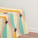 Padrão retrô simétrico com formas verde-azulado, amarelo e laranja entrelaçadas em um fundo bege. Acentos pretos em forma de estrela adicionam contraste, criando uma sensação vintage.