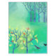 Pintura de dois pássaros negros em um campo verde em primavera. Uma seiva entra em folha e se espalha com flores, e ao fundo estão algumas árvores na borda da floresta. Arte original de Nic Squirrell.