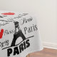 Ilustração de design de texto de Paris com Torre Eiffel e decoração de corações vermelhos. É possível mudar a cor de fundo e adicionar uma diferente à design com sua escolha.