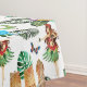 Máscaras de Tiki, dançarinos do Havaí, borboletas, bebidas tropicais e folhas, adornam essa toalha de aquarela branca e definem o cenário perfeito para sua próxima festa de luau ou tiki! Ilustrados sobre um fundo amarelo pálido então eles realmente pop. Fantástico!