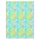 Um bonito pastel, aquarela, parece impressão de folha de palma. Em cores de azul-aqua, azul-lacre, roxo e amarelo-limão sobre fundo branco. Luz, areia e elegante.