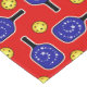 Gráfico de picleball vermelho, branco e azul super divertido para um torneio de picleball do Dia da Independência, ou festa de piquenique do Quarto de julho. Pás de picleball azuis com estrelas brancas sobre fundo vermelho pontilhado com bolas amarelas. No centro da toalha de mesa está uma bandeira americana feita de uma pá azul com estrelas brancas e listras vermelhas de pickleball em branco. Uma toalha de mesa colorida para um biscoito de 4 de julho, presente de festa de aniversário de verão para seus amigos patrióticos amantes de picleball.