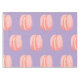 Sweet and delectable pink macarons elegantly displayed against a vibrant purple background.