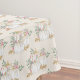 Uma toalha de mesa com abóboras brancas de cor d'água de rico com acentos de falso brilho dourado. Cercados por folhas verdes e flores rosas selvagens.