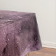 Linda toalha de mesa apresenta design celestial de aquarela com estrelas minúsculas em tons de roxo.