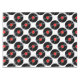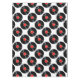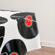 Um registro de vinilo LP quebrado com rótulo vermelho e um círculo de teclas de piano sobre um fundo branco.