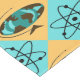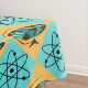 Este design de Tablecloth Trotter do Globo de Retro Harlequin apresenta um padrão repetitivo de um globo abstrato oval com continentes de grãos de madeira e símbolos atômicos. Os oceanos no globo vintage estão em tons de lacaio e turquesa. O globo encontra-se num suporte triangular de madeira e o mundo inteiro está num fundo de cor de trigo. Os símbolos atômicos estão sobre um fundo turquesa. Esta design é gatinha, bondade da era espacial no seu melhor!