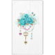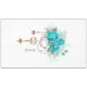 Chave de ouro antiga com rosas de turquesa de tendência, decoradas com folhas de ouro branco e miçangas cor-de-rosa e azuis. Cor agradável. Rosas de turquesa. Ouro branco. Tifania azul.