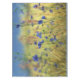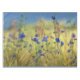 A chicória azul vívida e as flores de milho florescem num campo ouro de grama sob um céu azul pálido. O fundo loiro e verde também é interrompido pelo cintilante rosa das flores de capim-comum.