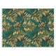 Seamless pattern of gold, jewelry, shiny fern branches and leaves on green, woodland, textured background. Golden fern.
