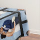 Seu conjunto de fotos favorito em um padrão de meio tijolo destaca essa toalha personalizada.