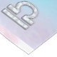 Um símbolo zodiacal de Libra em um fundo estiloso de madrepérola com impressão rosa e azul. Um design moderno e ousado para uma ótima ideia de presente de aniversário personalizado para ela.