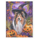 Abraçar o espírito do Dia das Bruxas com esta design encantadora que apresenta um cachorro fofo num chapéu de bruxa rodeado por abóboras entalhadas. Perfeito por adicionar um pouco de charme assustador às suas comemorações festivas.