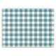 Tablecloth azul do teste padrão da verificação do guingão ou do búfalo da cerceta. Feito no algodão lavável da máquina dos EUA 100%. Os tablecloths decorativos com grande guingão checkered projetam em cores modernas. Três tamanhos 52" disponível x70", 60" x84" ou 60" x104". O tablecloth perfeito para o uso diário, os partidos de comensal ou como o presente ideal para partidos, casamentos, aniversários ou Natal do housewarming.