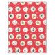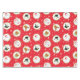 A toalha de Natal Critério, colorida e divertida, apresenta um fundo vermelho brilhante com estrelas brancas e circulares brancas com renas, bonecos de neve, Papai Noel, ursos de pelúcia e pinguins!