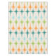 Vintage. Geometrics. Starbursts. Se você ama algumas daquelas palavras, este Tablecloth geométrico de Starbursts do vintage retro é para você. Características deste design moderno do meio século um fundo de creme com fileiras da turquesa, do verde limão, da laranja, e dos starbursts da cerceta. Este design da modificação emparelha-se belamente com o teste padrão móvel atômico retro da cebola pequena estranha e os produtos retros da grade e do Starburst. Retire o kitschy com este inacreditàvel teste padrão do divertimento. Vá adiante; alcance para os starbursts!