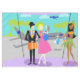 Este Tablecloth tropical retro das férias caracteriza um desenho minimalista dos desenhos animados de um casal atrativo que toma a viagem de uma vida! A cena moderna do meio século é ajustada em um aeroporto tropical. O Sr. e a Sra. Turista estão levantando na frente do assoalho às paredes de vidro do teto. Apesar de tudo, querem documentar cada momento de suas férias ao paraíso. O Sr. Turista é vestido em um terno preto, em uma luz - camisa azul, em um laço vermelho, e em um fedora preto. Está guardarando uma mala de viagem alaranjada. Seu braço é em torno de sua noiva bonita. Está vestindo um vestido do rosa quente. Uma bolsa azul brilhante é lançada sobre um braço. Não um cabelo é fora do lugar de sua cabeça loura bonito. Não faria para viajar pelo ar e para não olhar seu melhor! Ambos eles estão vestindo leis coloridos da flor em torno de seus pescoços. Ao lado deles, nós vemos um impressionante, ouro menina de hula descascada com cabelo preto de fluxo. A senhorita Hula está vestindo uma saia de grama tradicional e uma parte superior de biquini alaranjada. Se essa parte superior poderia falar, diria, "Hey! Eu sou uma parte superior de fala e eu combino a flor alaranjada em seu cabelo!" Em um braço, tem os leus havaianos extra prontos para oferecer a pessoa seguinte pisar fora do plano. Ah, não pode você cheirar as orquídeas agora? No lado oposto do vidro, nós podemos ver o avião luxuoso, enorme que trouxe o casal a seu destino das férias. No alcatrão, os hospedeiros de bordo do estilo dos anos 60 estão fazendo sua maneira à construção. Está vestindo um encaixe do formulário, um uniforme azul e um chapéu azul do pillbox. Yowza! Esse louro lindo pode oferecer-me o café, o chá, ou o leite a qualquer momento! O céu uma máscara do aqua que o faz querer alcançar para o óleo do suntan! Nós podemos ver as silhuetas verdes das palmeiras e a silhueta azul escuro de um vôo plano entre o macio, luz - nuvens azuis. Oh, eu espero que aqueles otários pobres nesse plano não estão em sua maneira de volta à moagem diária! Aloha!