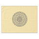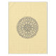 Uma mandala concêntrica, tipo rendas, em azul escuro, com pontos brilhantes, azuis e dourados, girados entre as camadas, faz um design divertido, que traz à mente um céu noturno estrelado.
