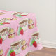 Tablecloth apresenta uma ilustração original de um marcador temático de comida de uma equipe de porcelana, macarões e um cone com creme e geleia.