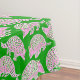 Uma toalha de mesa verde com ilustrações divertidas de tatus preppy rosa e verde. O tecido verde brilhante e os tatus preppy animados criam uma atmosfera caprichosa e divertida, perfeita para um encontro de verão!