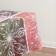 Esta elegante safra branca forma geométrica azulejo arte folclórica, com flores do estilo mandala geométrica, formas solares, pontos, listras, formas de diamante, quadrados e triângulos, flores geométricas de inverno, formas rotativas repetidas, num fundo rosado, vermelho, coral, amarelo, laranja, roxo, cinza, creme, castanho e muitas outras manchas coloridas de aquarela. Uma bela tendência de moda, trabalho de arte, impressão de imagem desenhada à mão, perfeita para decoração doméstica ou visto diário.