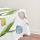O design do produto apresenta um padrão de flores de tulipa coloridas em roxo, vermelho, rosa, azul e amarelo. Esta ilustração botânica torna uma toalha de mesa elegante moderna e única.
