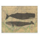 Baseado em desenhos antigos de baleias, esta é uma colagem rústica de trabalho de arte de baleias com baleias, texto Moby e mapa antigo ao fundo.