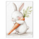 Um coelho adorável abraçando alegremente uma cenoura gigante.