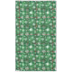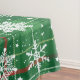 Uma bela toalha de xadrez de Natal em flocos de neve verdes, dourados e brancos cobrindo-a para o jantar de Natal e festas.